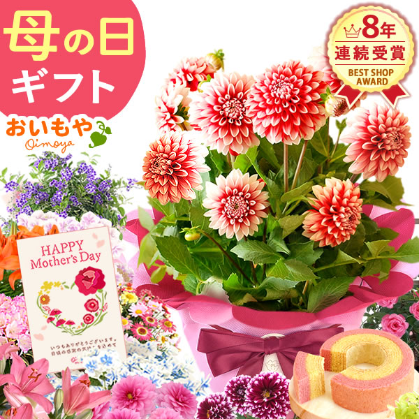 母の日 花とセット お菓子 送料無料 鉢植え 選べる あじさい アジサイ ダリア マーガレット ユリ シャクナゲ バラ ジャスミン バウムクーヘン おいもや flower-dset 母の日_fo 母の日 ギフト 生花 母の日 花鉢 スイーツ OR お菓子 母の日 プレゼント potted flowerset