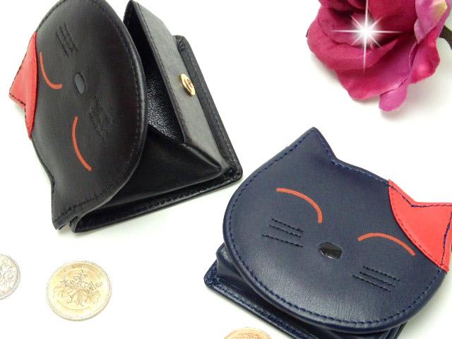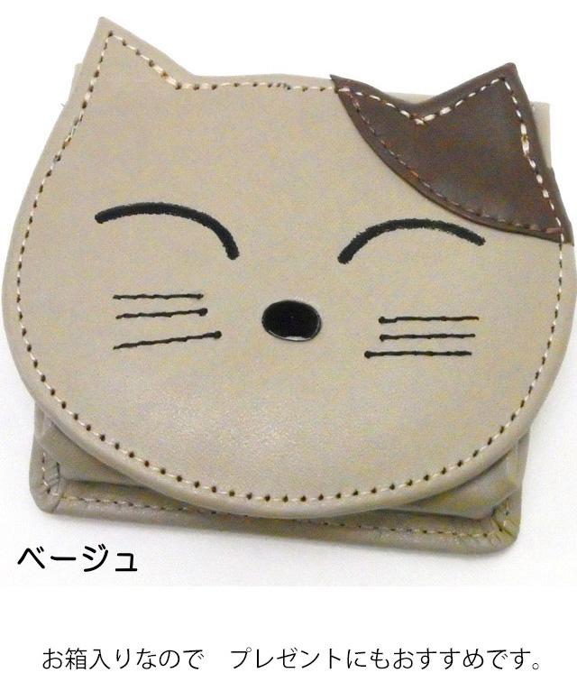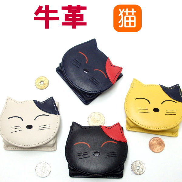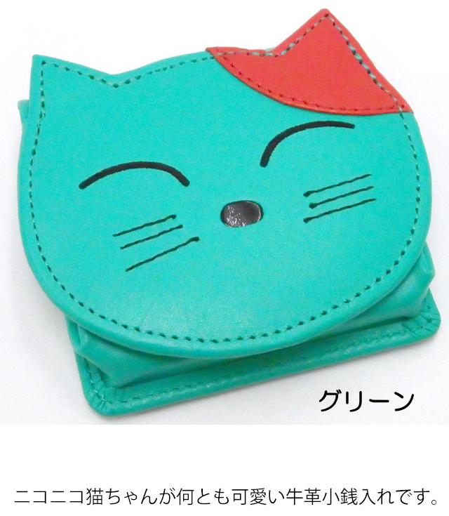 小銭入れ コインケース 財布 猫 レディース ギフト プレゼント 牛革 財布 本革 ニコニコ 猫型 かわいい おしゃれ キャット