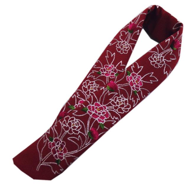 半衿 半襟 刺繍 濃赤色地ワイン牡丹 日本製 振袖 成人式 卒業式 袴 着物 女性用 レディース 振袖用 訪問着 小紋 洗える着物 はかま きもの