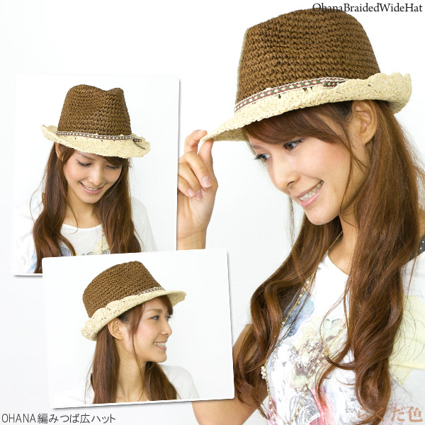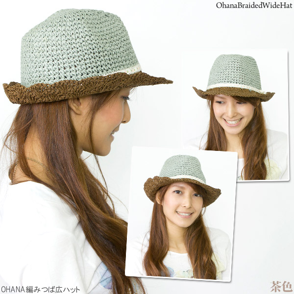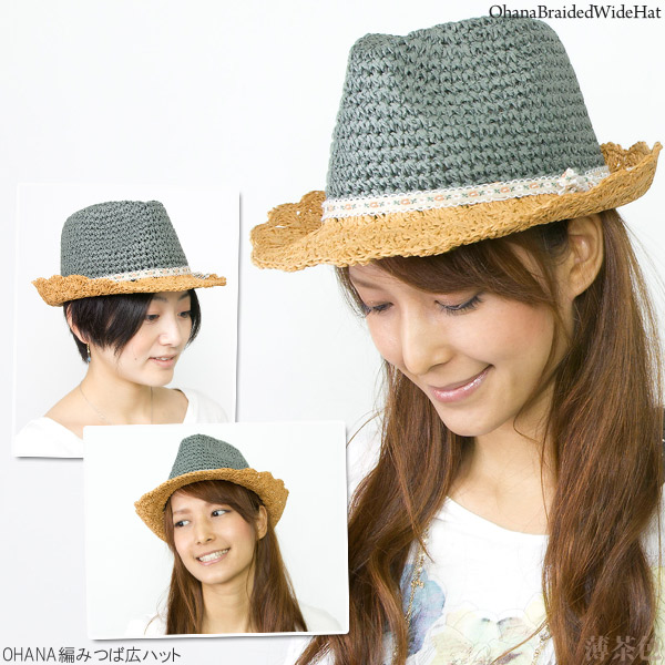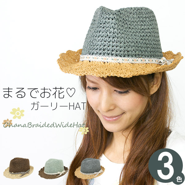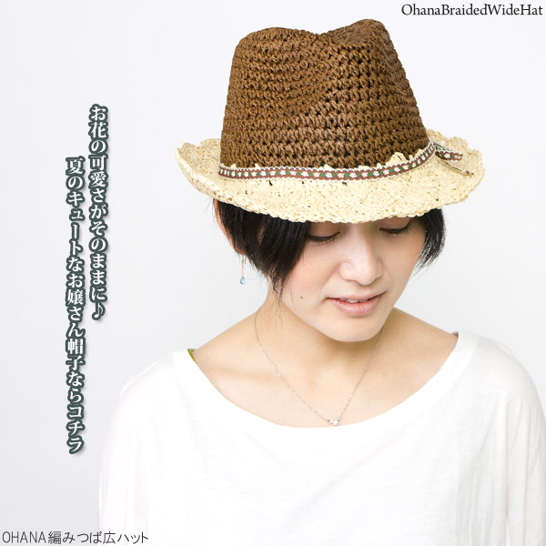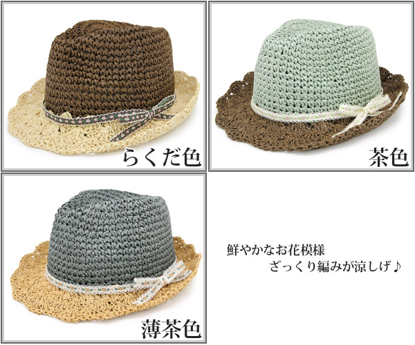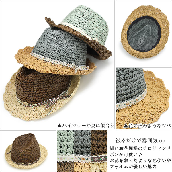ハット レディース 春夏 帽子 チロリアン ストローハット 中折れ お花柄 HAT バイカラー / OHANA編みペーパーハット
