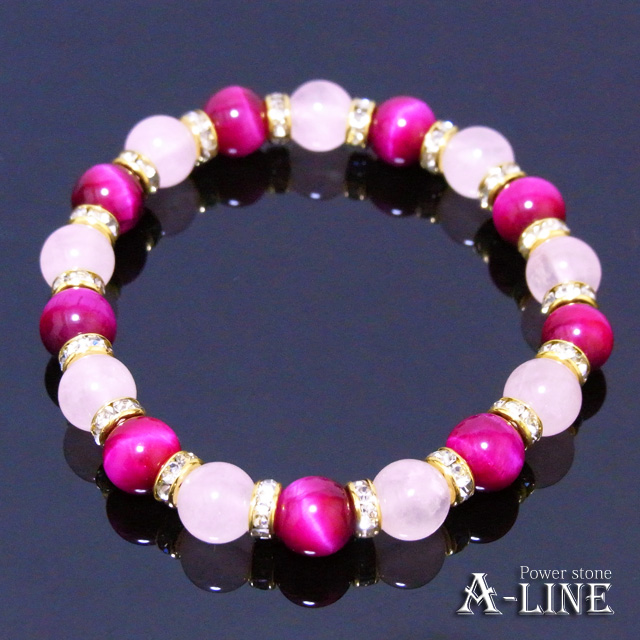 パワーストーン ブレスレット 金運UP AAAピンクタイガーアイ・ローズクォーツ・キラキラロンデル8mm PW-2629