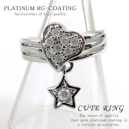 ハートと星の揺れるピンキーリング お洒落リング パーティー 結婚式に 【 kor373 3号 5号 7号 9号 11号 13号 】