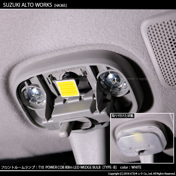 | 商品名 | SUZUKI ALTO WORKS[HA36S]対応フロントルームランプ用LEDバルブ T10 COB 70lm POWER LED WEDGE BULB [TYPE-B] 形状:T字型 LEDカラー:ホワイト 1セット1個入り | |||