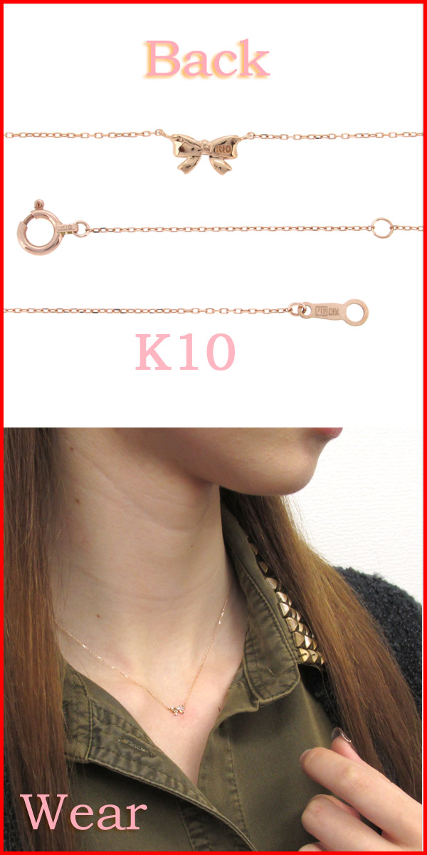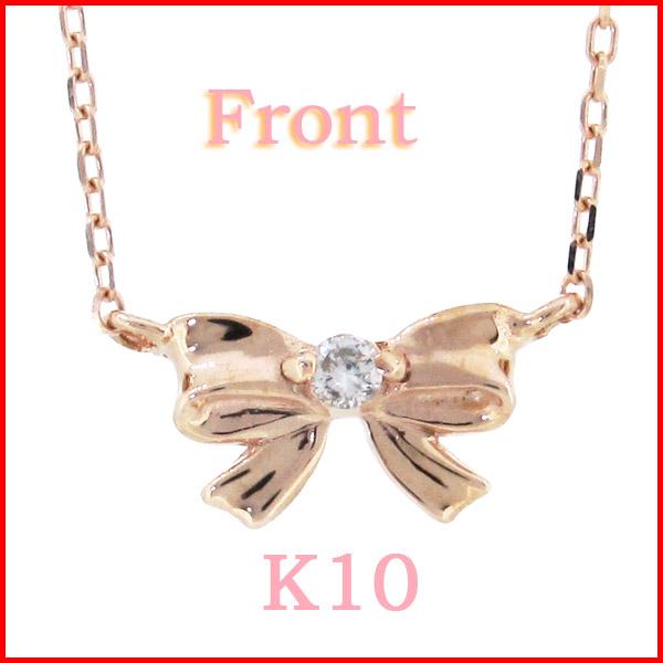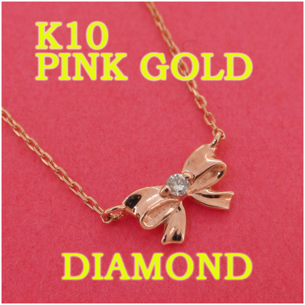 ダイヤモンド リボン ピンクゴールドネックレス 【LOVERS & RING】 送料無料 /レディース 女性 10金 K10