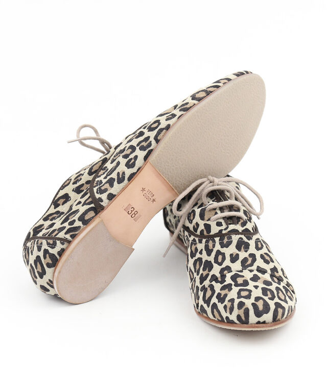 レオパード柄をプリントしたスウェード素材のレースアップシューズです。