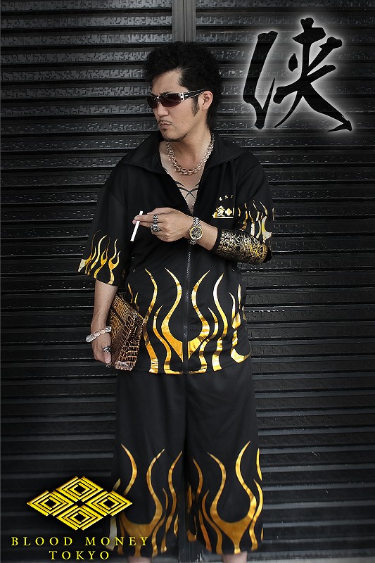 送料無料 14011黒 BLOOD MONEY TOKYO半袖セットアップ 仁義 大きいサイズ悪羅悪羅系オラオラ系暴走族右翼雑誌掲載服 悪党の店 バースジャパン BIRTHJAPAN