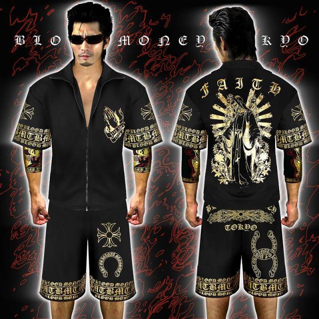 送料無料 14013黒×金 BLOOD MONEY TOKYO半袖セットアップ マリア 大きいサイズ悪羅悪羅系オラオラ系暴走族右翼服 悪党の店 バースジャパン BIRTHJAPAN