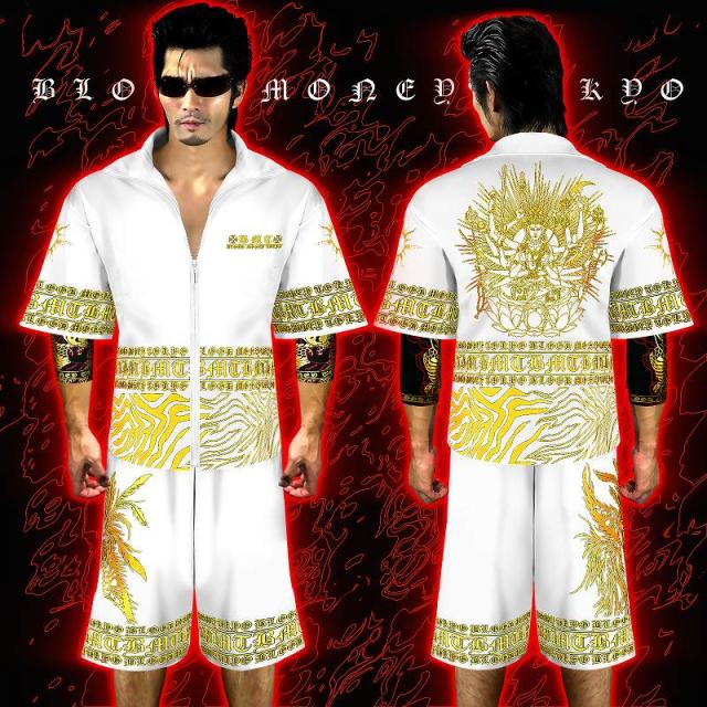 送料無料 14014白×金 BLOOD MONEY TOKYO半袖セットアップ 千手観音 大きいサイズ悪羅悪羅系オラオラ系暴走族右翼服 悪党の店 バースジャパン BIRTHJAPAN