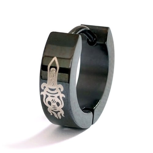 ステンレスフープピアス 【ブラックボディー タガー(短剣)】 【直径13mm】 【片耳ピアス】