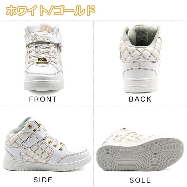 スニーカー キッズ ジュニア 子供 ダンスシューズ 女の子 男の子 ガールズ ボーイズ 白 ホワイト 黒 ブラック ダンススニーカー カジュアルシューズ 靴 ハイカット おしゃれ シンプル パークアベニュー PARK AVENUE PA-8132