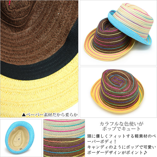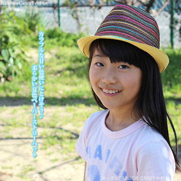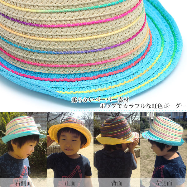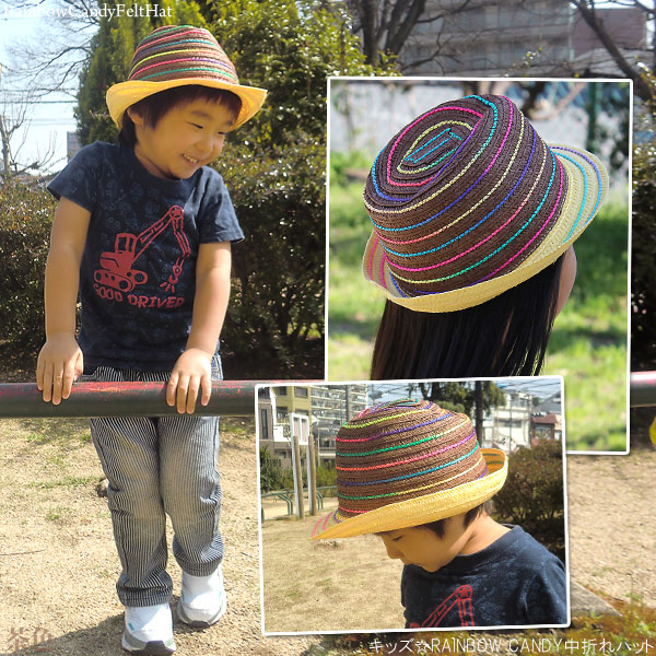 麦わら帽子 子供用 ハット 帽子 バイカラー 春夏 男の子 女の子 ストローハット / キッズ RAINBOW CANDY中折れハット