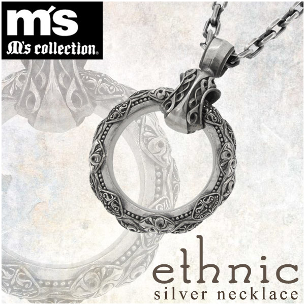 エスニックリングシルバーネックレス(チェーン付ペンダントトップ ペンダントヘッド)【エムズコレクション】送料無料/メンズ ネックレス ブランド msコレクション