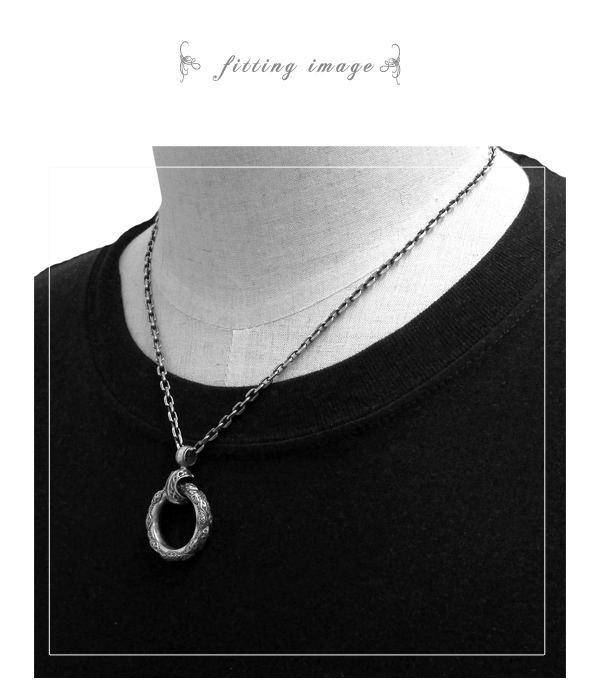 細かな装飾をリングに施し、バチカンを付けたシルバーネックレスです。