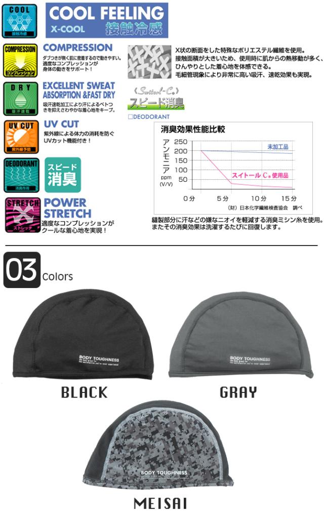 4点までネコポス可 ヘッドキャップ クールコンプレッション ヘルメットキャップ ボディタフネス パワーストレッチ 接触冷感 消臭 吸汗 速乾 春夏用 おたふく手袋 JW-611