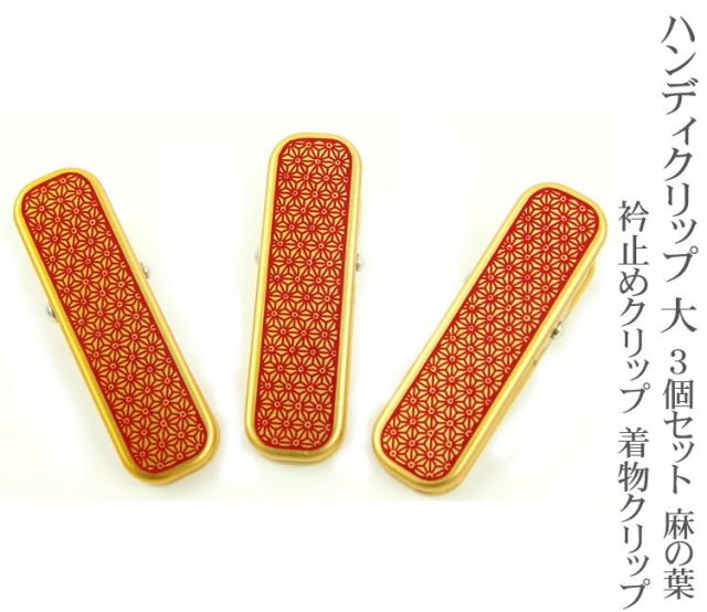 〔zu〕ハンディクリップ 麻の葉柄 大3色セット 衿止めクリップ 着物クリップ 日本製