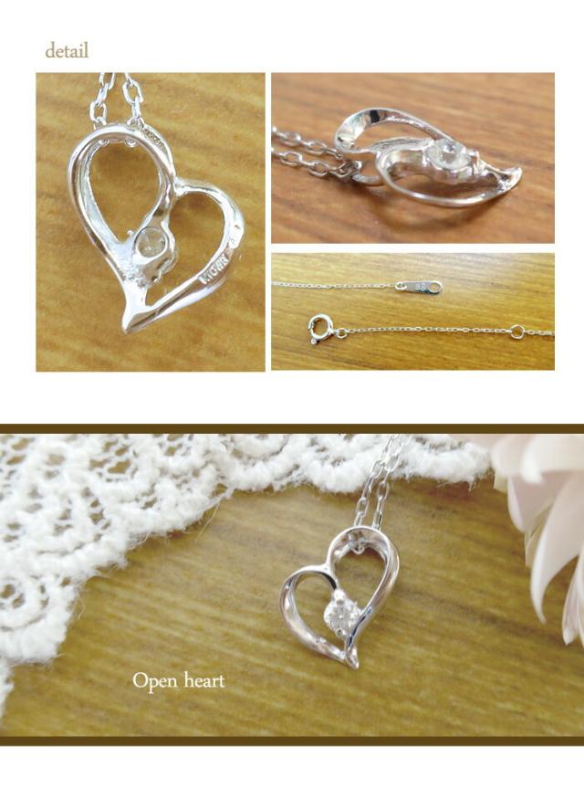 0.03ct ダイヤモンド K10WG オープンハート ネックレス 送料無料 /レディース 10金 ジュエリー