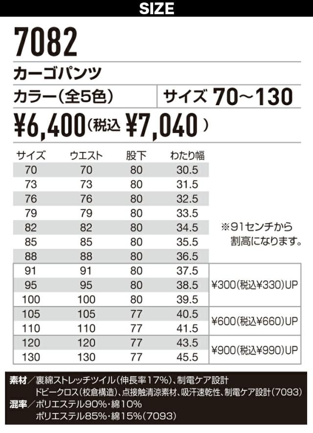 作業着 秋冬用カーゴパンツ 耐久性 快適性 BURTLE 7082