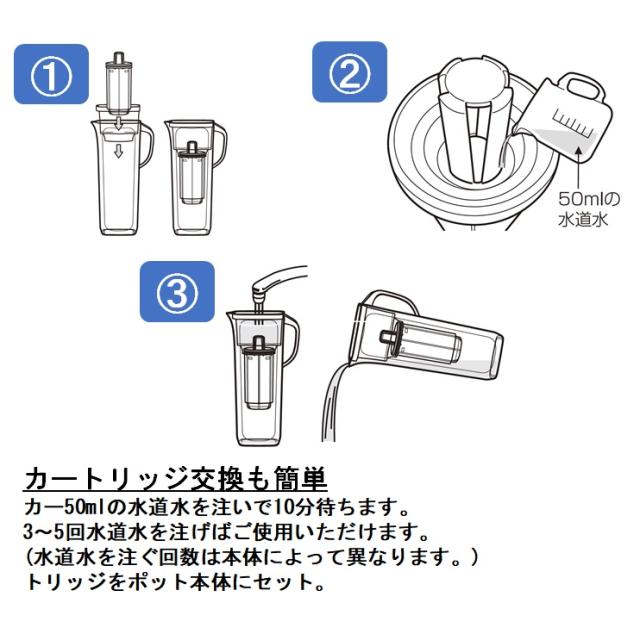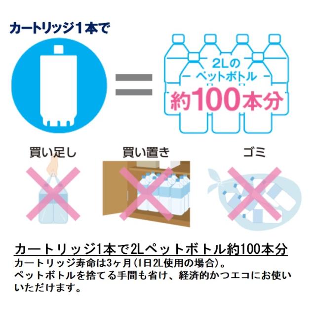 - カートリッジの交換が簡単で、お手軽に使えるのでポット用を利用してます。 夏場は、ポット2本フルで使ってます。 飲料はもちろん、調理やお米を炊く時等安心し、美味しくいただいてます。