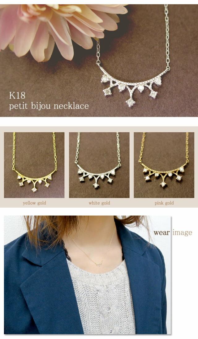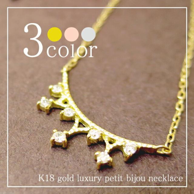 【送料無料】選べる 3カラー 0.07ct ダイヤモンド K18 プチ ビジュー ネックレス【アリゼ】