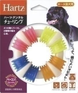 ★ 楽しくデンタルケアができる犬用玩具。パーツが動くリング型。(PU、ナイロン。ベーコンフレーバー)