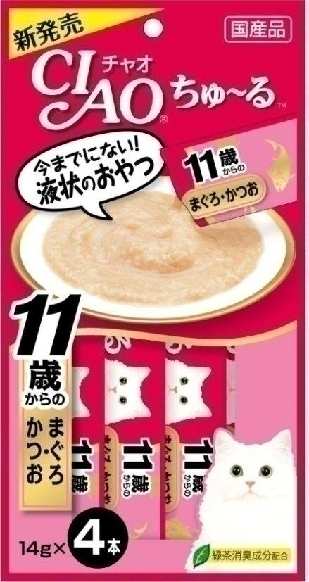 まぐろ、かつお、まぐろエキス、タンパク加水分解物、コラーゲンペプチド、糖類(オリゴ糖等)、ミネラル類、増粘多糖類、調味料(アミノ酸等)、ビタミンE、緑茶エキス、紅麹色素