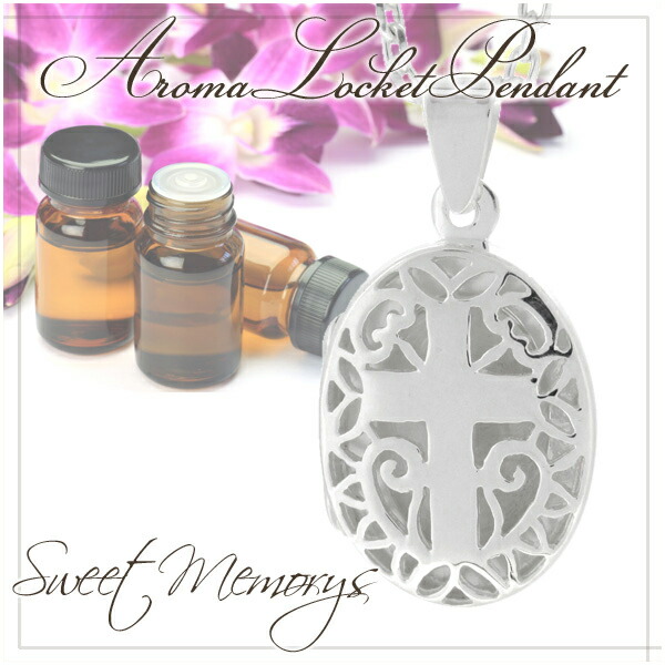 透かし クロス シルバー アロマ ロケット ネックレス アロマペンダント ロケットペンダント アロマネックレス ロケットネックレス 刻印