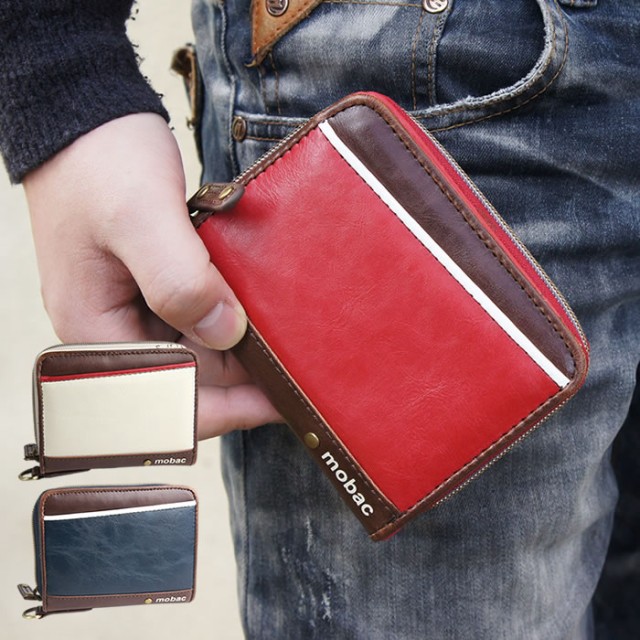 二つ折り財布 財布 二つ折り メンズ ラウンドファスナー ツートンカラー mobac