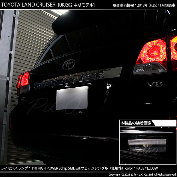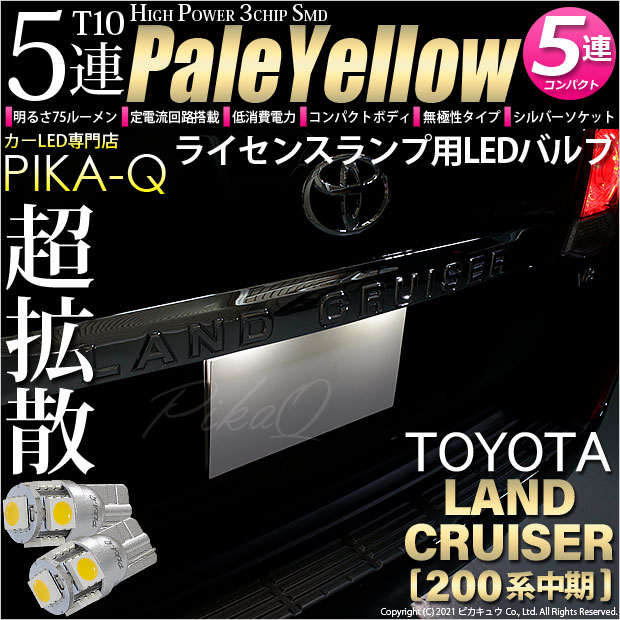 ピカキュウ,LED専門店,LEDバルブ,LED,SMD,T10,W5W,T10 HIGH POWER 3CHIP SMD 5連ウェッジシングル球,ペールイエロー,ライセンスランプ,番号灯,トヨタ,ランクル200,ランドクルーザー200,200系,中期,TOYOTA,LAND CRUISER 200