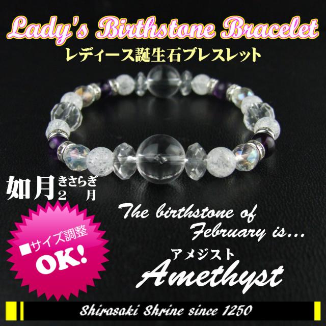 アメジスト2月の誕生石パワーストーンレディースロンデルブレスレットお守り 祈願済み/誕生日プレゼント