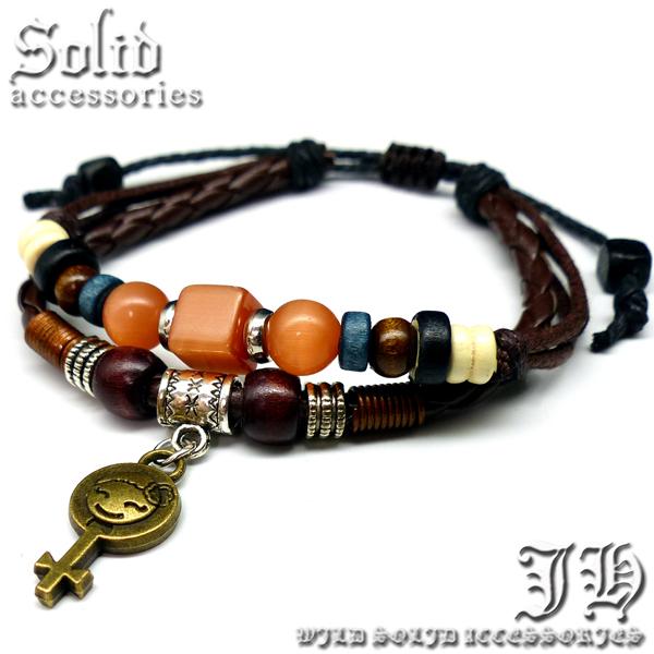 最速2秒装着 本革 ブレスレット メンズ 鍵 顔 オレンジ レザー ブレス 【 b993 】