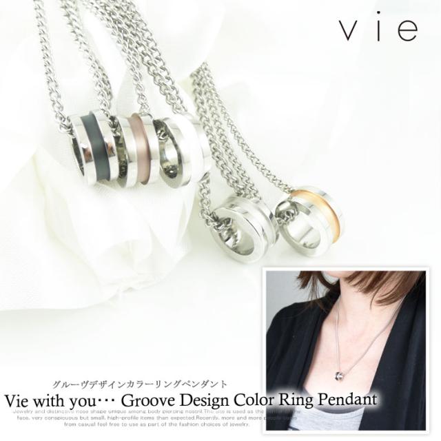 ステンレスネックレス vie グルーブデザインカラーリングペンダント ネックレスチェーン付 バイカラー