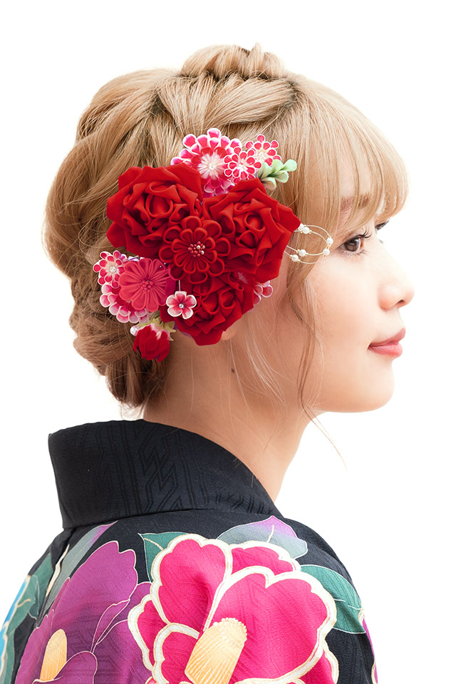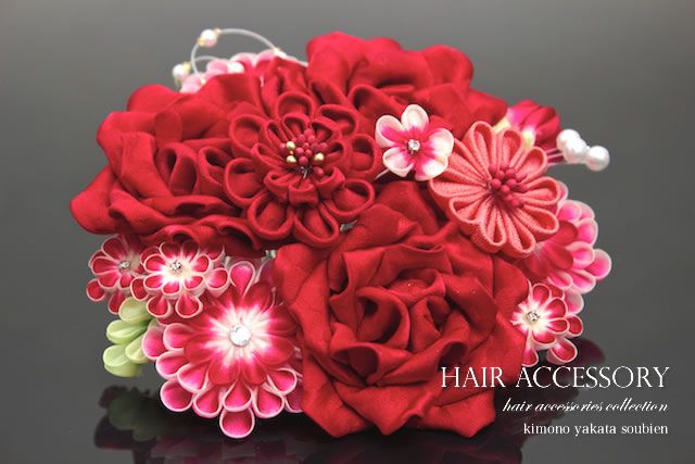 成人式 髪飾り 成人式の髪飾り つまみ細工 振袖 菊 薔薇 赤 コーム パールビーズ ビジュー 髪留め ヘアアクセサリー 和装