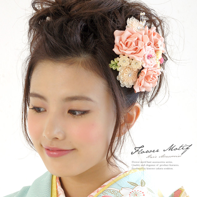 成人式 髪飾り 成人式の髪飾り つまみ細工 振袖 菊 薔薇 ピンク コーム パールビーズ ビジュー 髪留め ヘアアクセサリー 和装