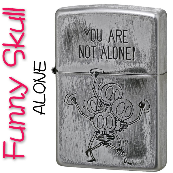 zippo ジッポーライター ジッポ ファニースカル (ドクロ 髑髏) ALONE ユーズド加工 かっこいい オシャレ メンズ ギフト プレゼント メール便対応