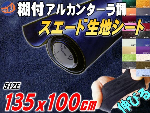 スエード (大) 紺 【宅急便 送料無料】 幅135cm×1m 伸びる スエード生地シート 糊付き アルカンターラ調 ネイビーブルー スエードシート バックスキンルック 曲面対応 カッティング可 内装 インテリア ウォールクロス 壁紙 天井 張替 レザー シール ステッカー スウェード