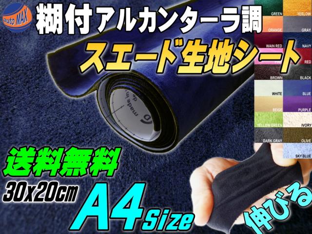 スエード (A4) 紺 【メール便 送料無料】 【商品一覧】 幅30cm×20cm 伸びる スエード生地シート 糊付き ネイビーブルー アルカンターラ調 A4サイズ スエードシート バックスキン 曲面対応 カッティング可 インテリア ウォールクロス 壁紙 天井 張替 革 シール ステッカー