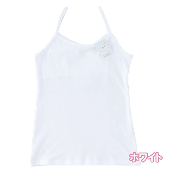 ガールズ 胸二重タイプ キャミソール 綿100% 無地 130cm-165cm | ノースリーブ インナー 白 下着 肌着 スクールインナー 小学生 中学生 キャミ