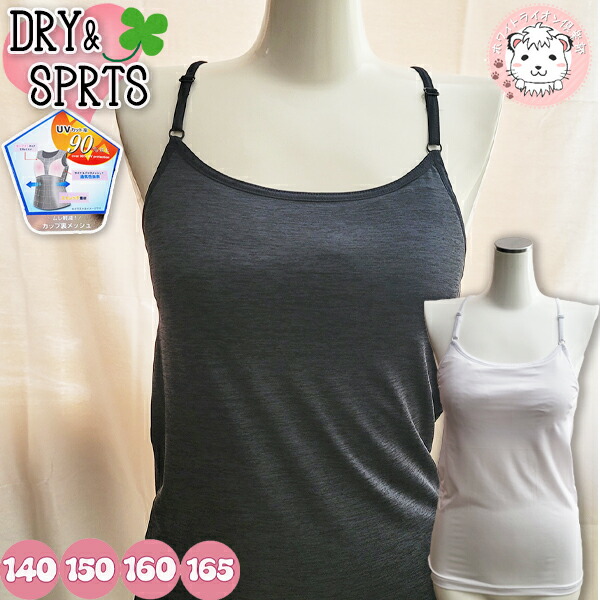 体育DEインナー キャミソール ソフトカップ付き 吸汗速乾 UVカット 140-165cm | 無地 ストレッチ ジュニア 女の子 ポリエステル インナー 下着