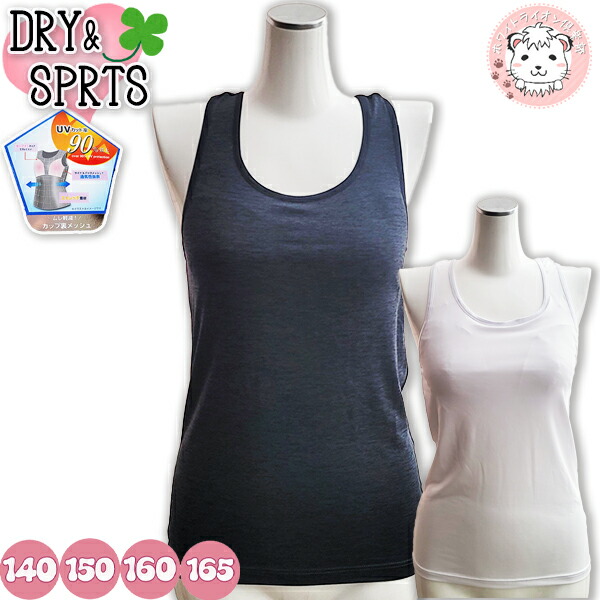 体育DEインナー タンクトップ ソフトカップ付き 吸汗速乾 UVカット 140-165cm | 無地 ストレッチ ジュニア 女の子 ポリエステル ノースリーブ インナー 下着