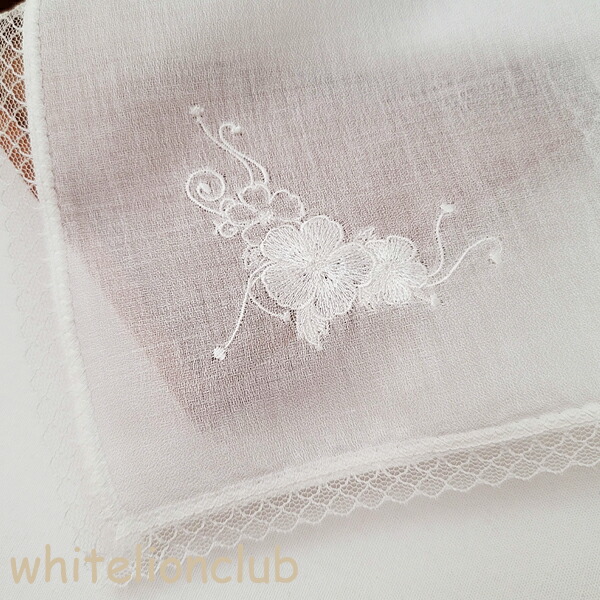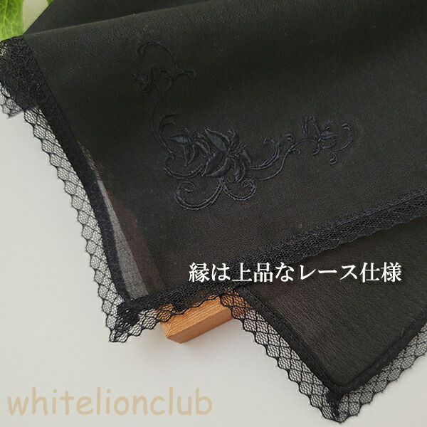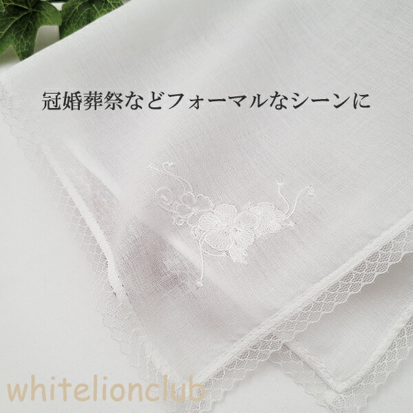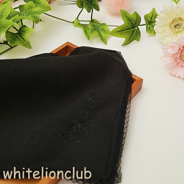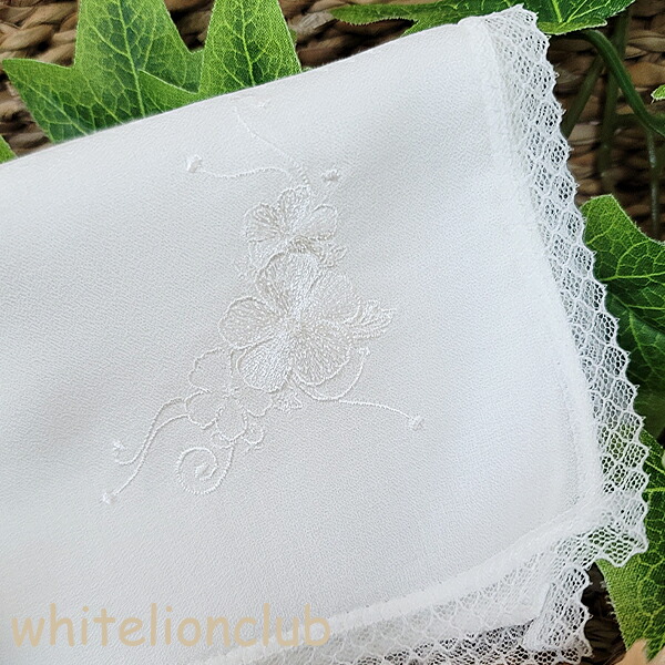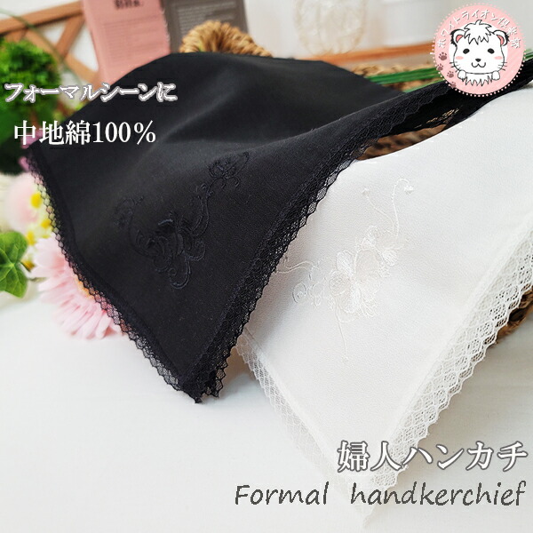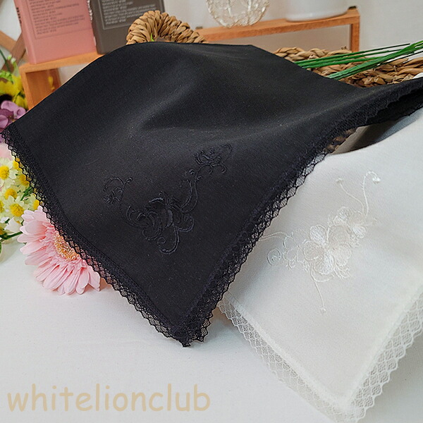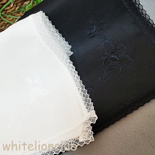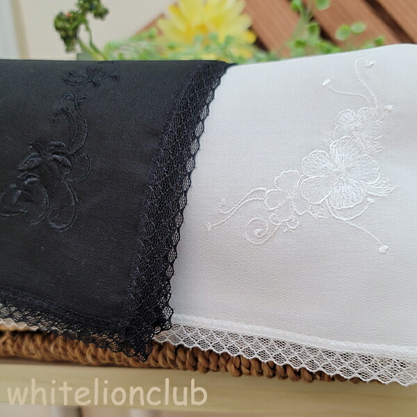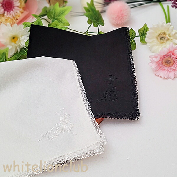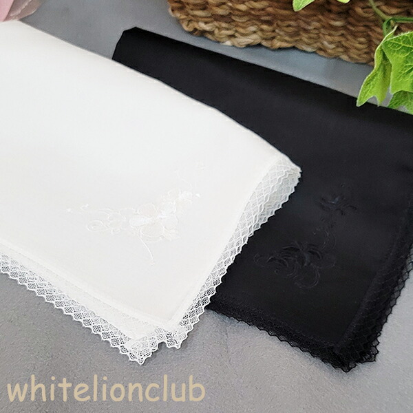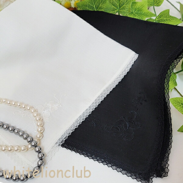 ハンカチ レディース 白 黒 刺繍入り レース 礼装用 ブライダル 婦人