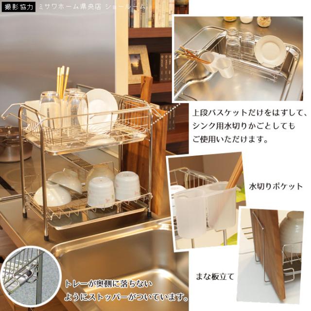 ■主な機能:トレーストッパー、水切りポケット、まな板立て付き