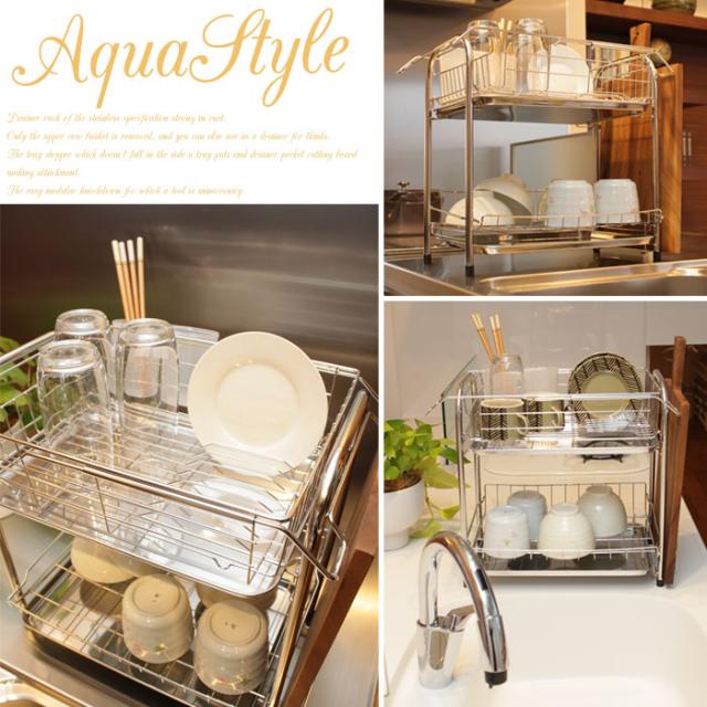 【値下げ】アクアスタイル ステンレス スライド式 水切りかご 2段 ワイド 水切りラック/水切りかご/水切り/バスケット/ラック/かご/キッチン/雑貨