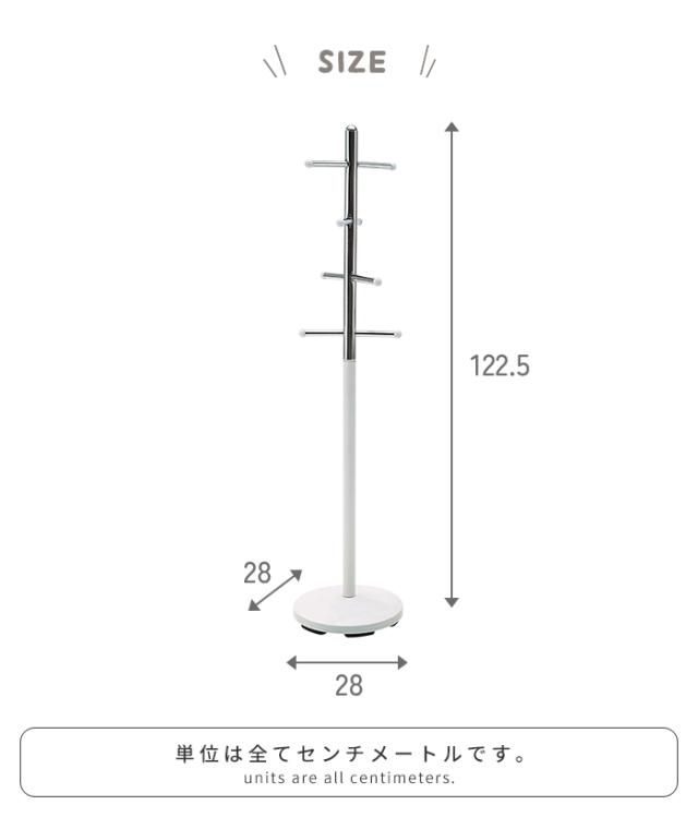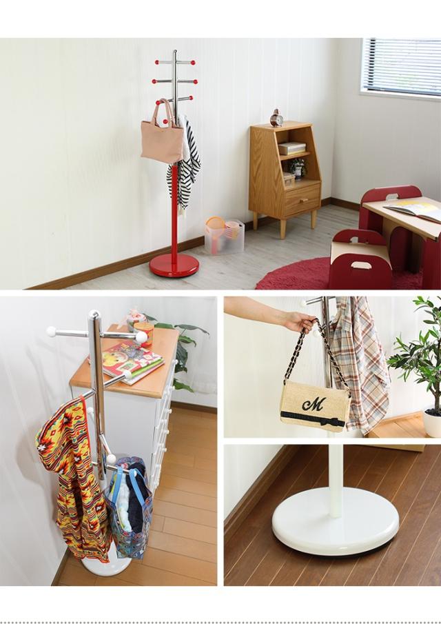 | コートやカバン、帽子もまとめて収納。 従来のポールハンガーに比べて高さ123cmと背が低く設計されており、お子様でも使いやすい高さ設定。 パイプの端はすべて丸くなっているので安心してお使いいただけます。 直径28cmのスペースさえあれば家中どこでも設置OK。 |
