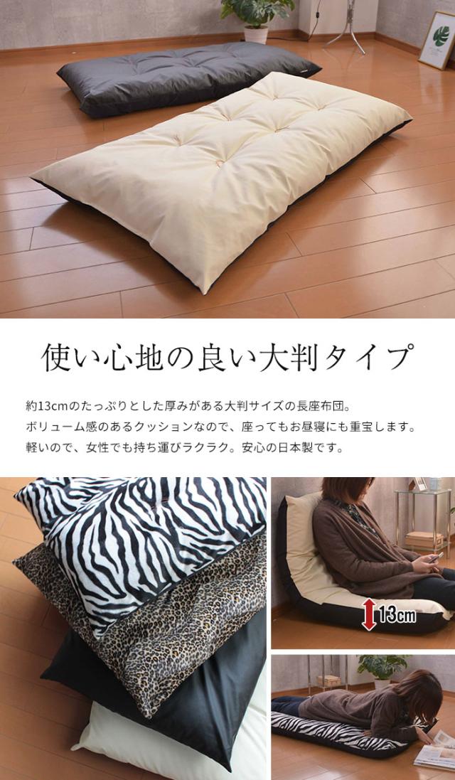十分な厚みで使い心地の良い大判サイズの長座布団。