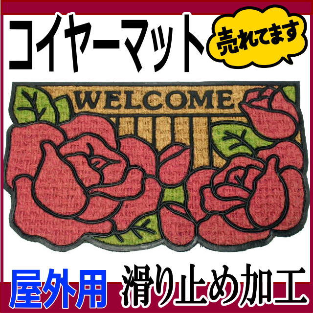 玄関マット 屋外 コイヤーマット 屋外用 ドアマット ラバー 泥落とし 薔薇雑貨 薔薇柄 バラ ローズ 花柄 かわいい おしゃれ ココヤシ