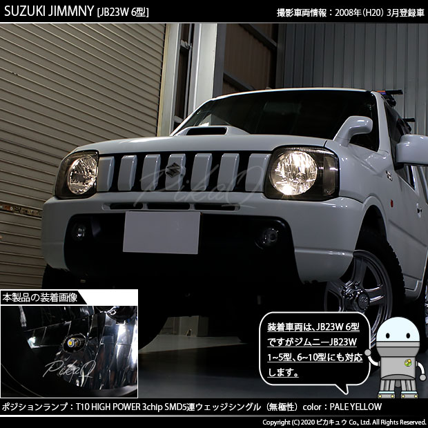 | ピカキュウ,LED専門店,LEDバルブ,LED,SMD,T10,W5W,T10 HIGH POWER 3CHIP SMD 5連ウェッジシングル球,ペールイエロー,ポジション灯,ポジションランプ,車幅灯,スモール,スズキ,ジムニーワイルドウィンド,SUZUKI,JIMNY WILD WIND,JB23W,6型 |