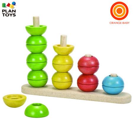 高密度素材で作られたピースはきれいな丸みとしっかりした重さがあり子どもの手にぴったりと納まるように作られています。棒にピースを通すことで集中力や手先指先の器用さを養います。棒の根本は折れ曲がるようになっており、小さな子どもが遊んでも安全なように作られています。