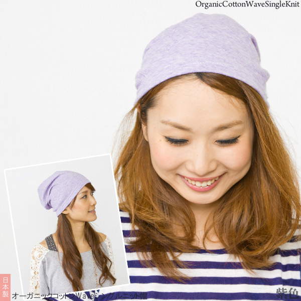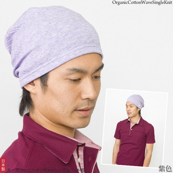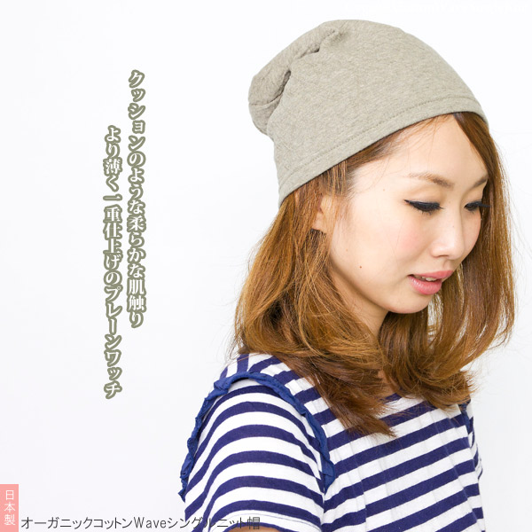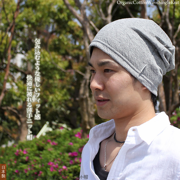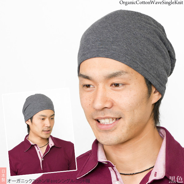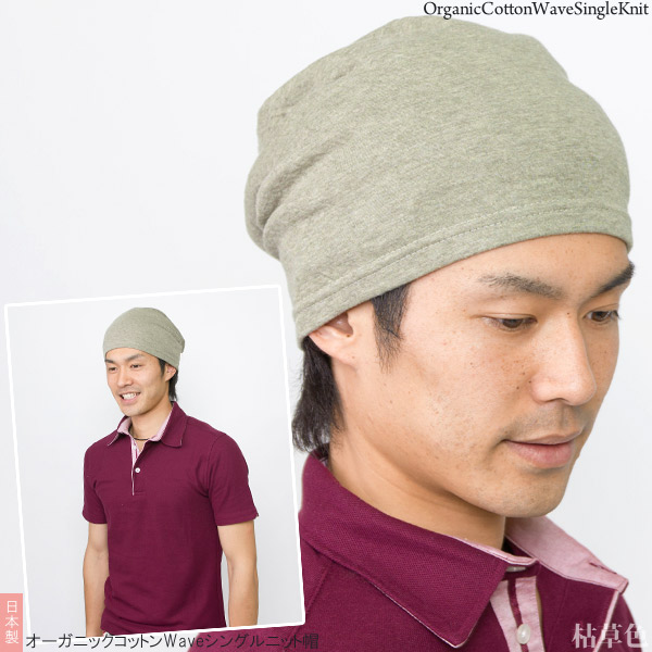 医療用 室内 帽子 [メール便可] メンズ 大きいサイズ レディース / オーガニックコットンWaveシングル ニット帽 日本製