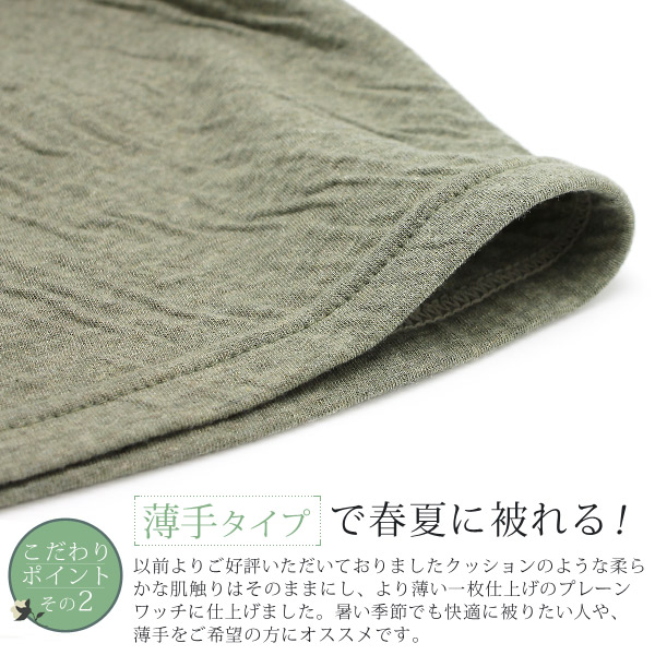 - 春夏のニット帽を探してて、日本製で、しかも、オーガニックコットンで肌に優しいということで、購入しました。医療用としても、使ってるということなので、肌の弱い私には、夏の暑い時でも、ニット帽被りたいのでぴ...