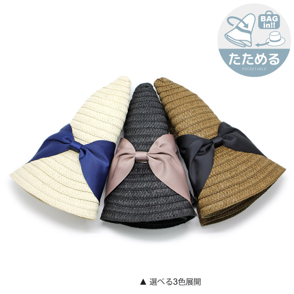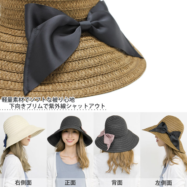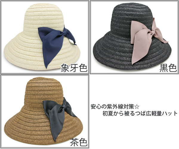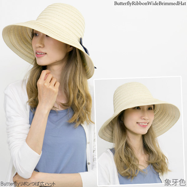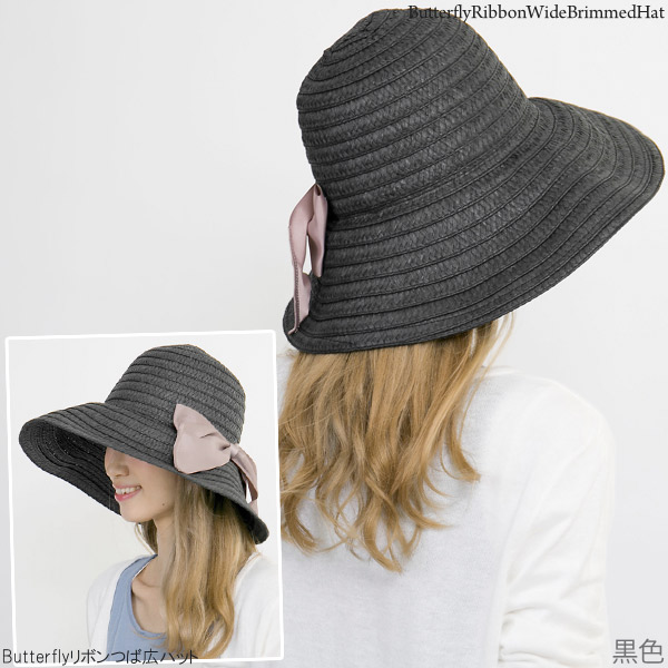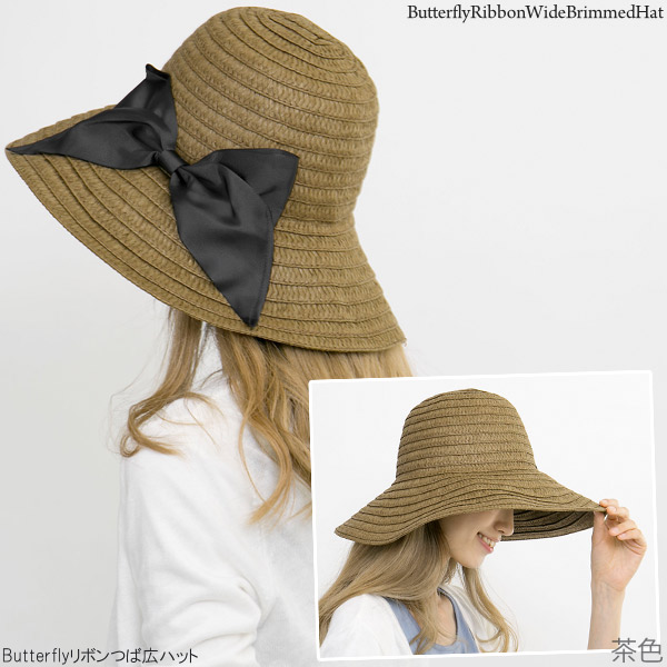 帽子 つば広 [メール便可能] レディース UV対策 女優帽 ハット HAT リボン 春夏 女性用 / Butterflyリボンつば広ハット